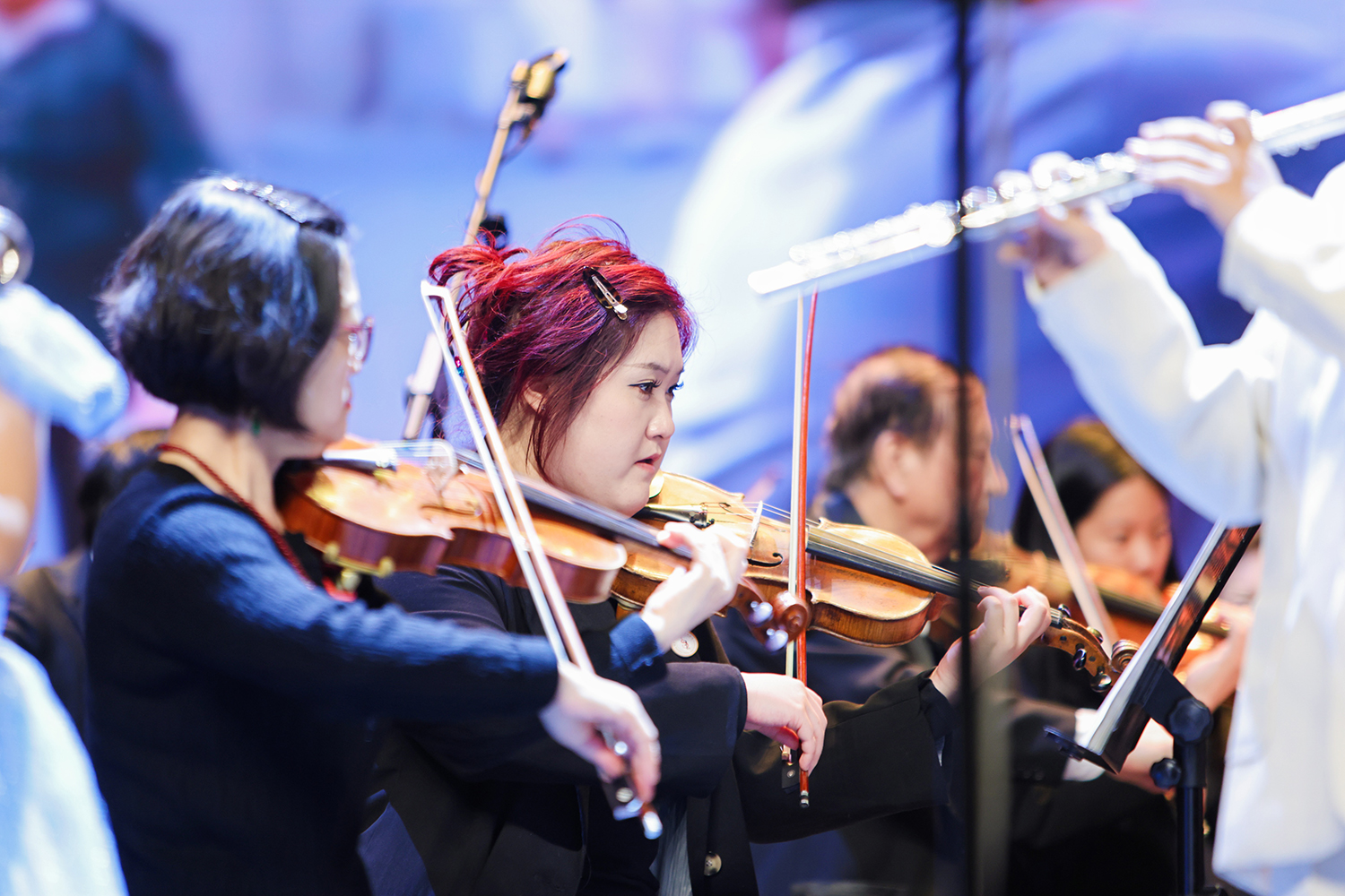音乐会在气势恢宏的《万马奔腾》中拉开序幕,熟悉的《大鱼》、《青花瓷》旋律通过古典乐器的演绎,别有一番韵味;而当提琴与长笛协奏,那悠扬的《萱草花》又让在场观众无不动容。